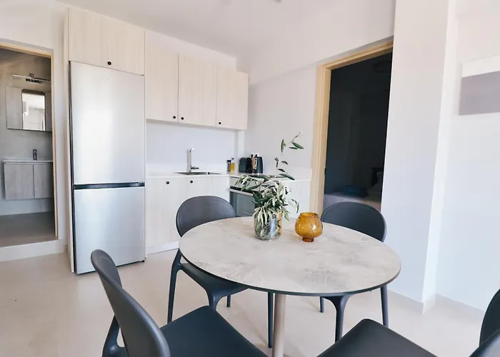 Ponadto w obiekcie jest wyposażony aneks kuchenny z piekarnikiem i zmywarką do naczyń. Niedaleko do przystanku autobusowego Glyfa. Ten apartament dysponuje tarasem z widokiem morze.